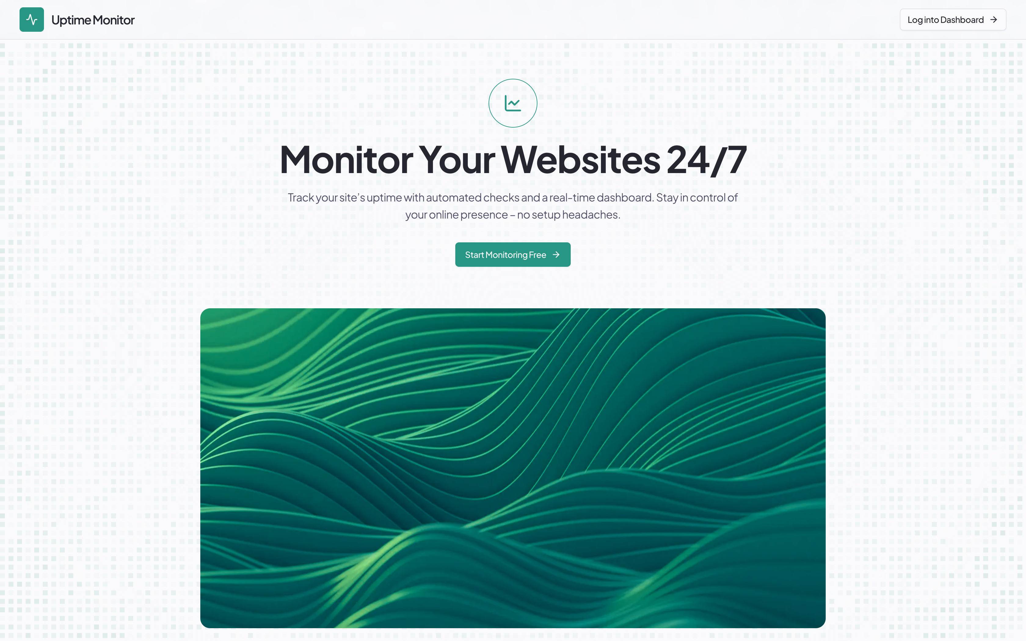 A real-time uptime monitoring platform that allows users to track the availability and performance of their websites. Built with a focus on reliability and user experience incorporating detailed performance analytics through an intuitive dashboard.